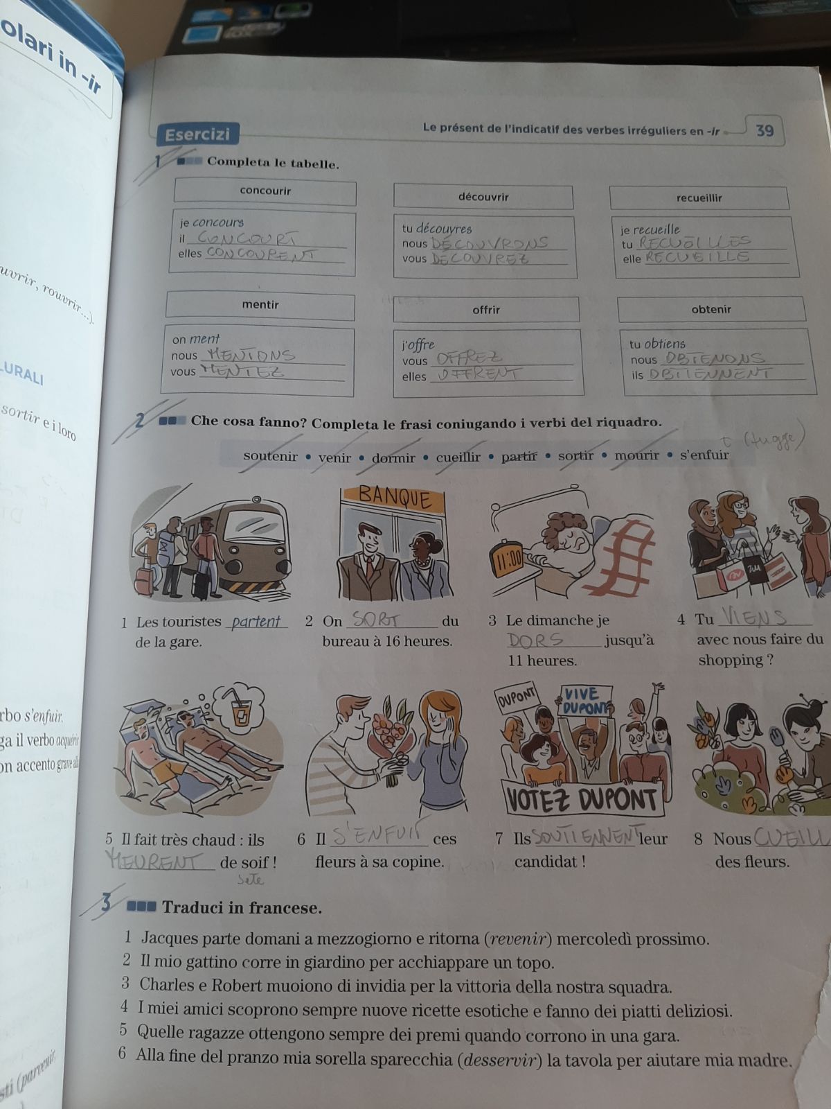 GRAMMAIRE : Le présent de l’indicatif des verbes en -IR -+ ex. n. 1,,3,5 – per Lunedì 1 dicembre