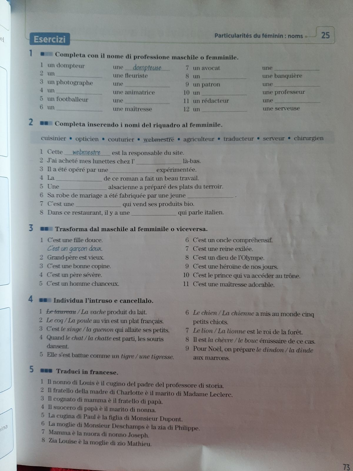 Particulatiés du féminin : noms + ex. 1,2,3 – per venerdì, 28 novembre