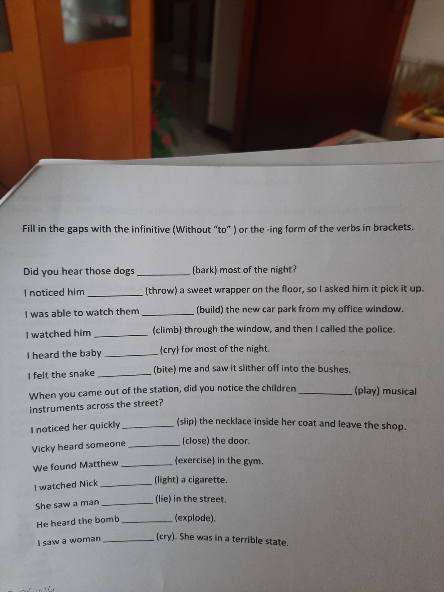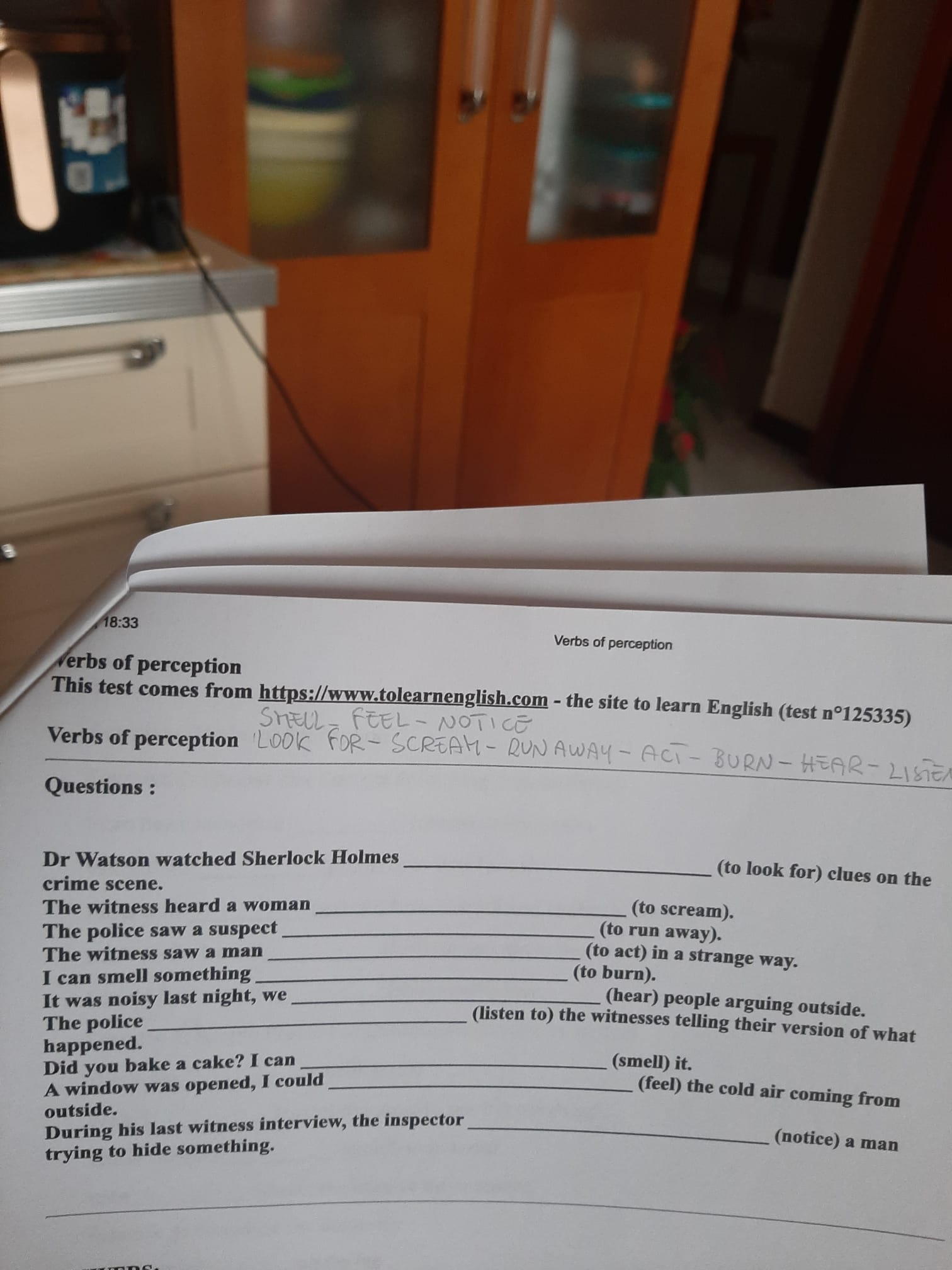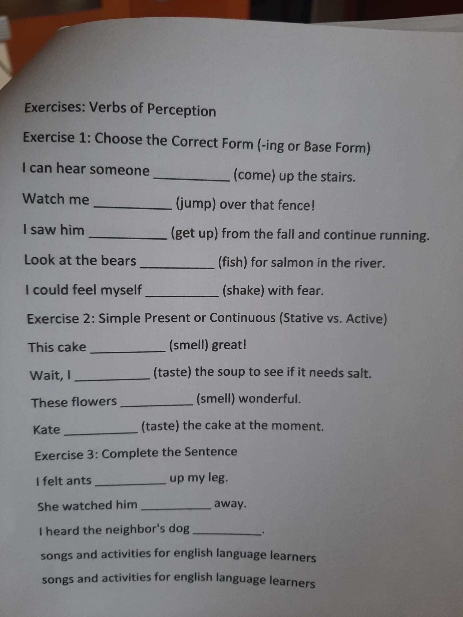 Verbs of Perception + ex. – per venerdì 24 aprile 2026