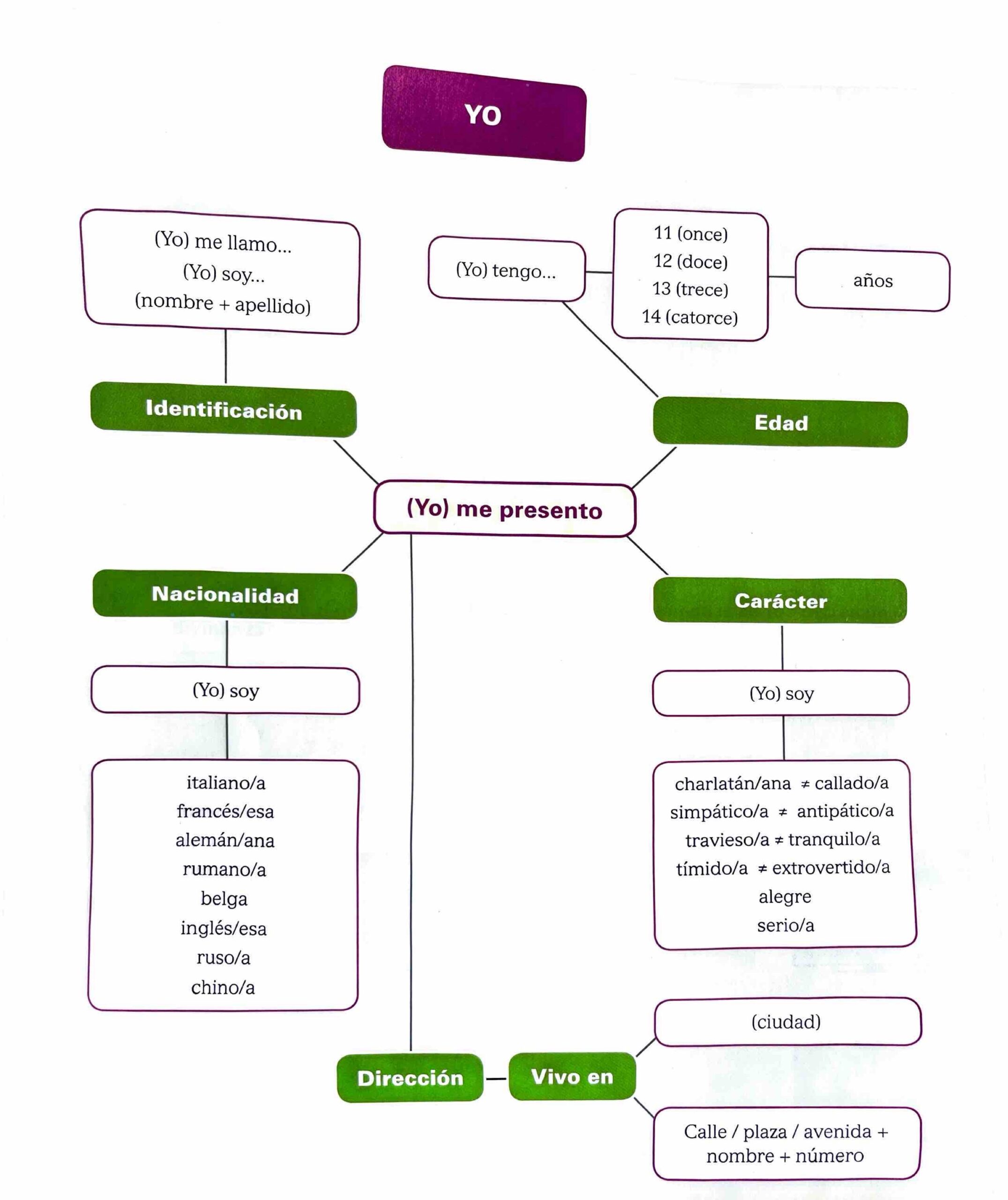 • los números, Los días de la semana, los meses, las estaciones, los pronombres personales, la familia, países y ciudadanos, el instituto, saludos, los articulos, formación de plural/ singular/ femenino/ masculino, los interrogativos, los demostrativos, presente de indicativo y pronombres reflexivos, verbos ser y tener, latino America