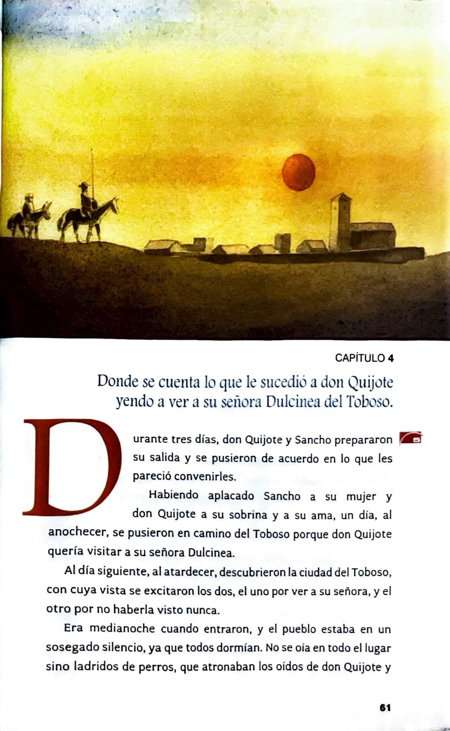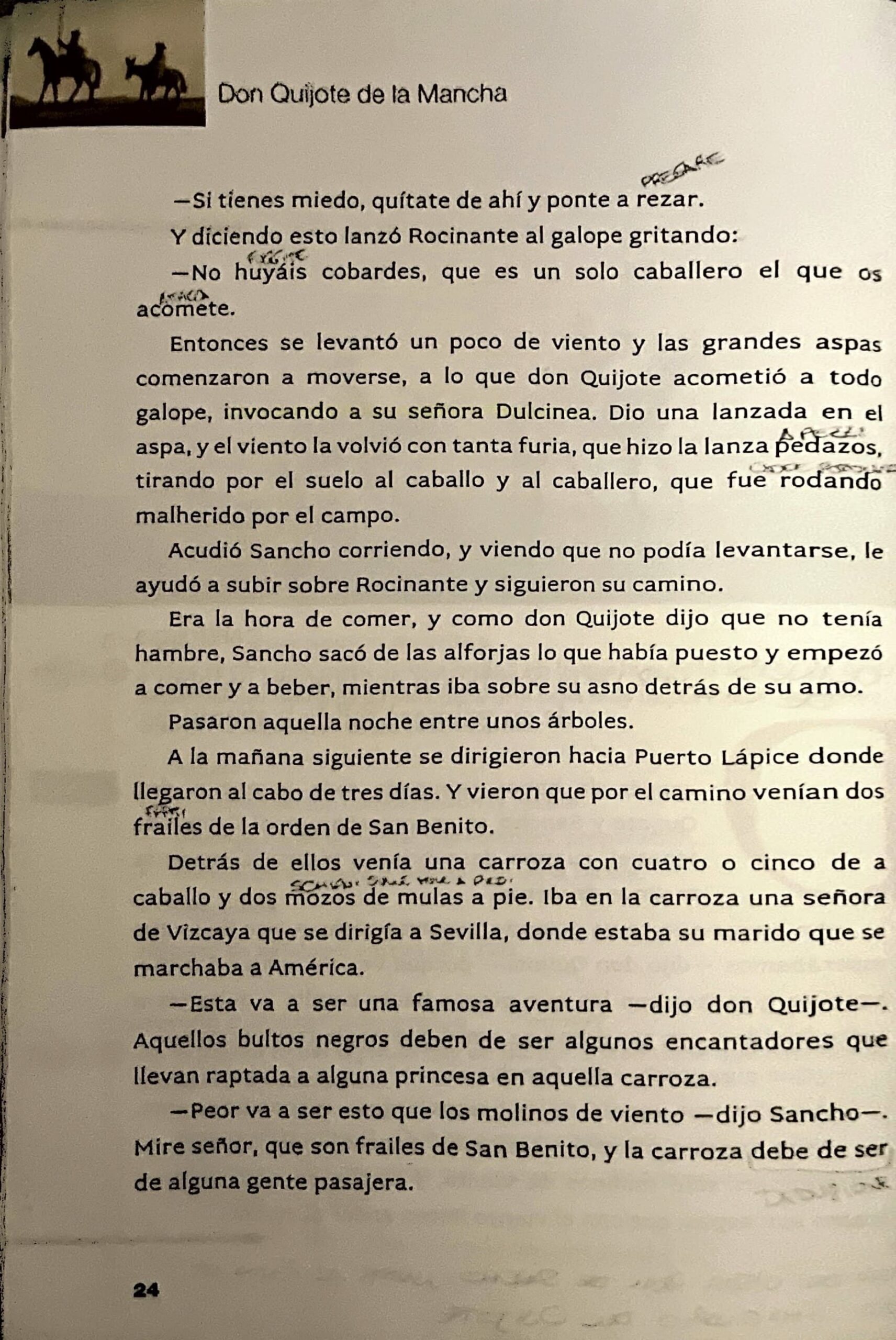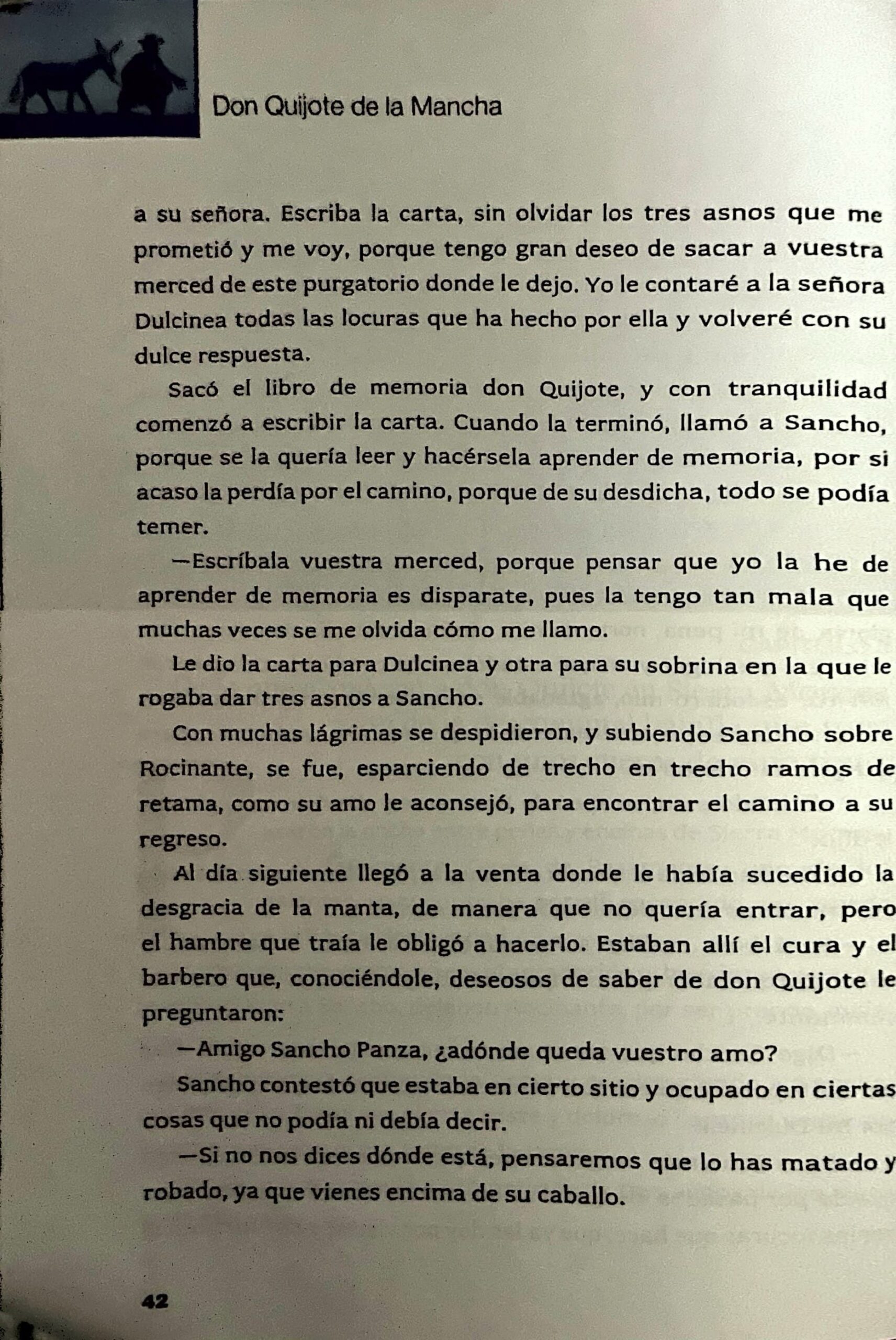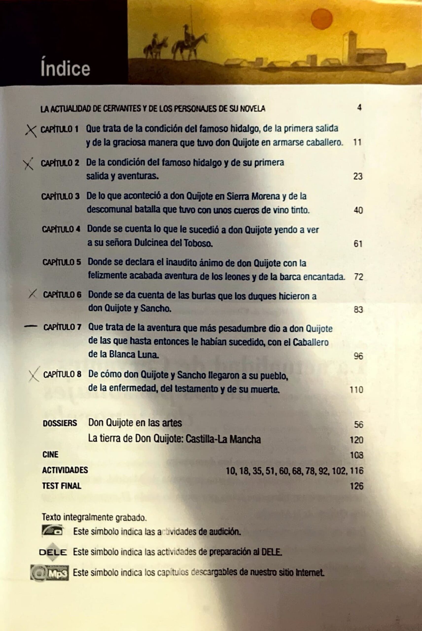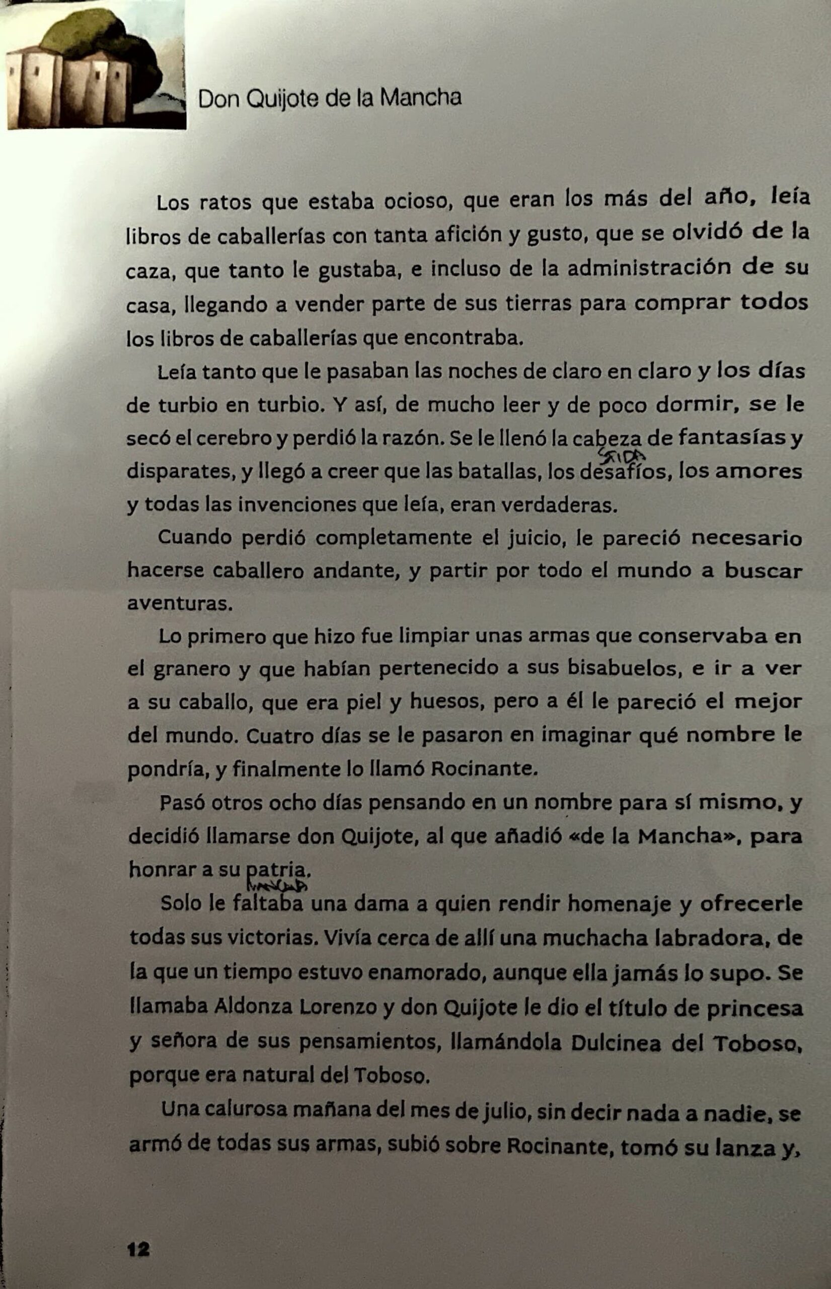 leggere dal libro caricato Don Quijote de la Mancha, da pagina 11 a pagina 16 e svolgere gli esercizi a pagina 10 e 18