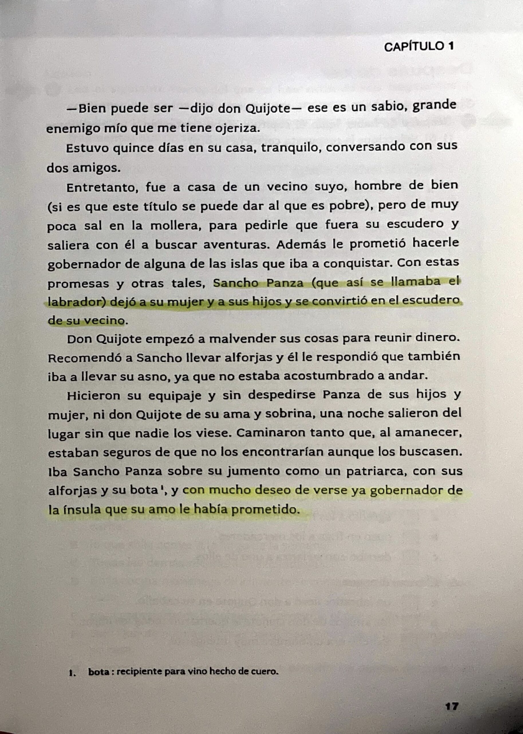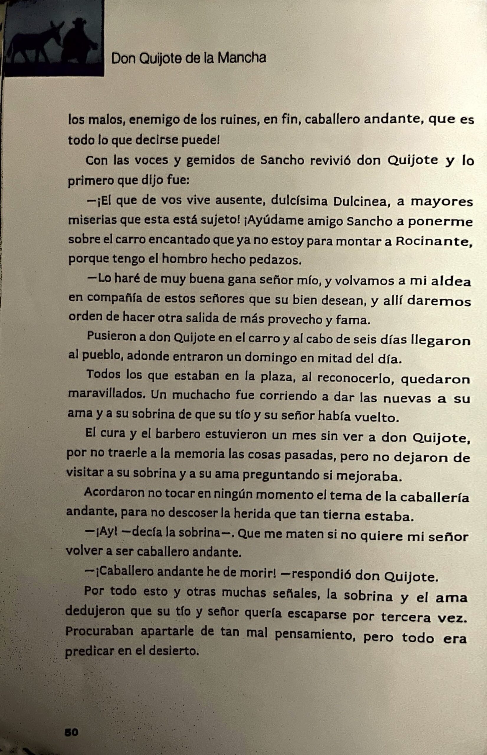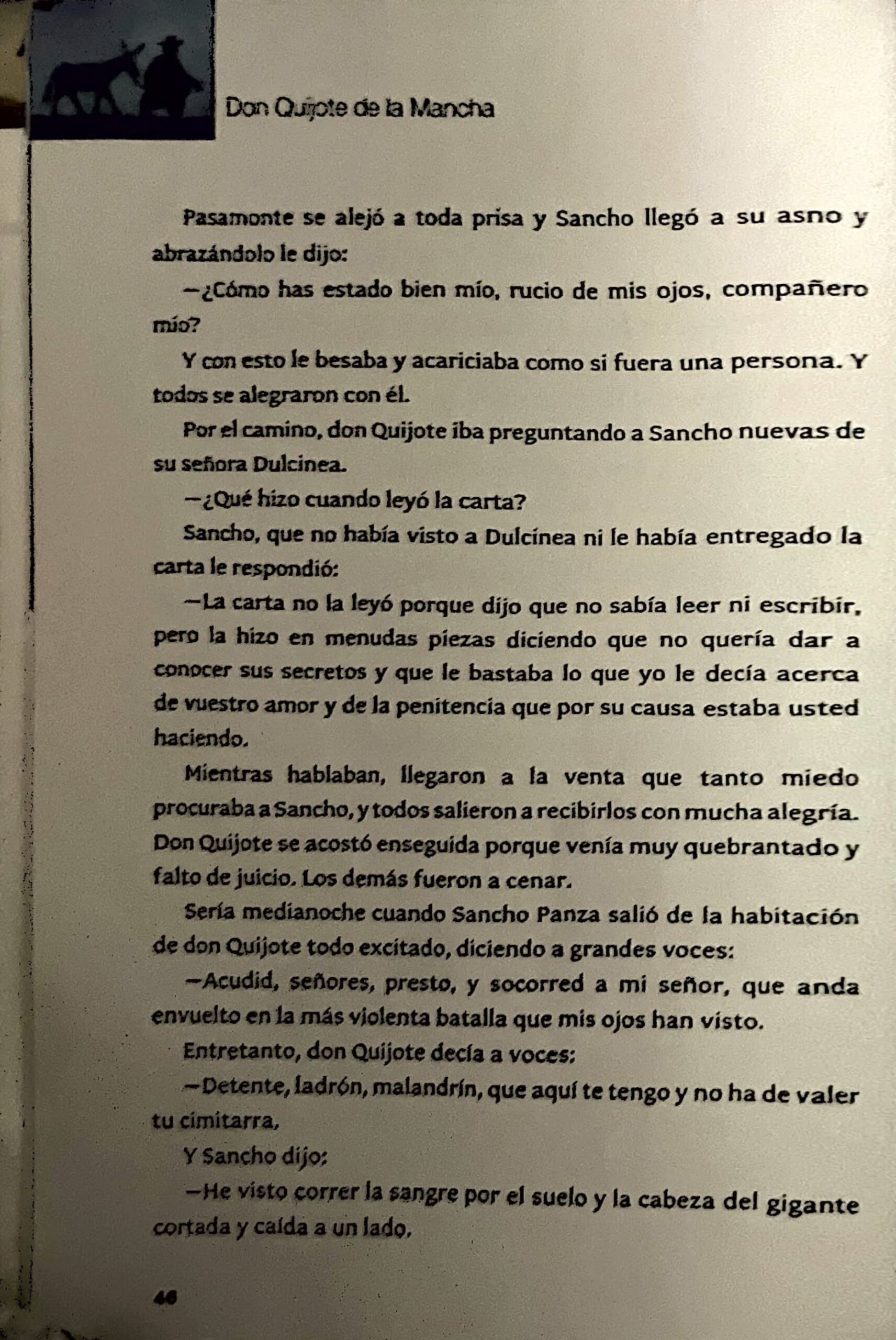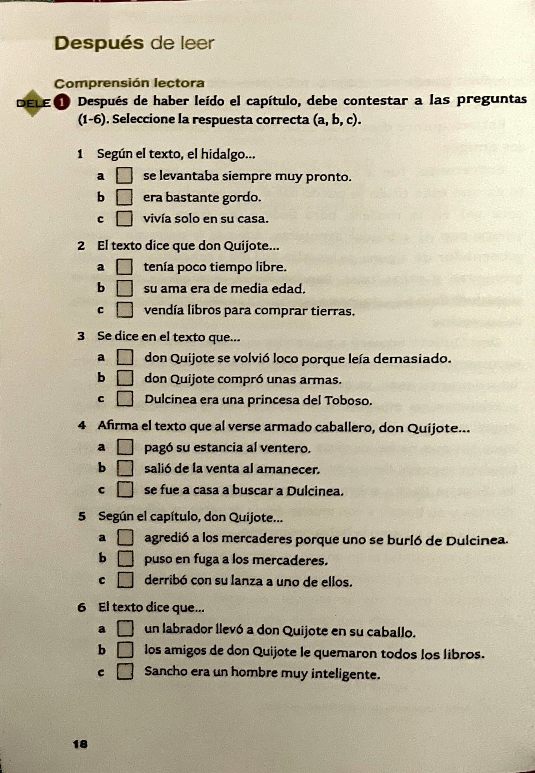 leggere dal libro caricato Don Quijote de la Mancha, da pagina 11 a pagina 16 e svolgere gli esercizi a pagina 10 e 18