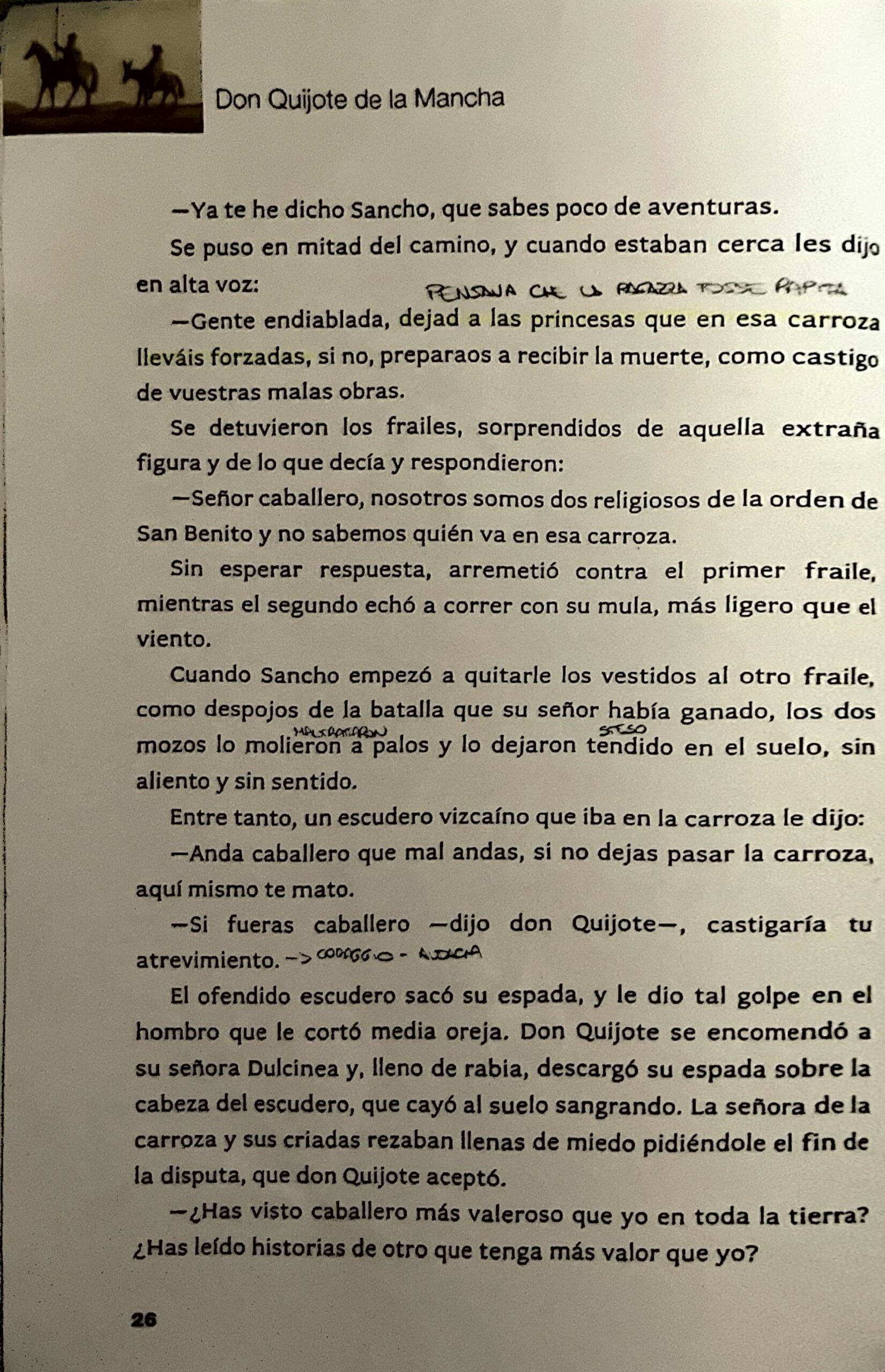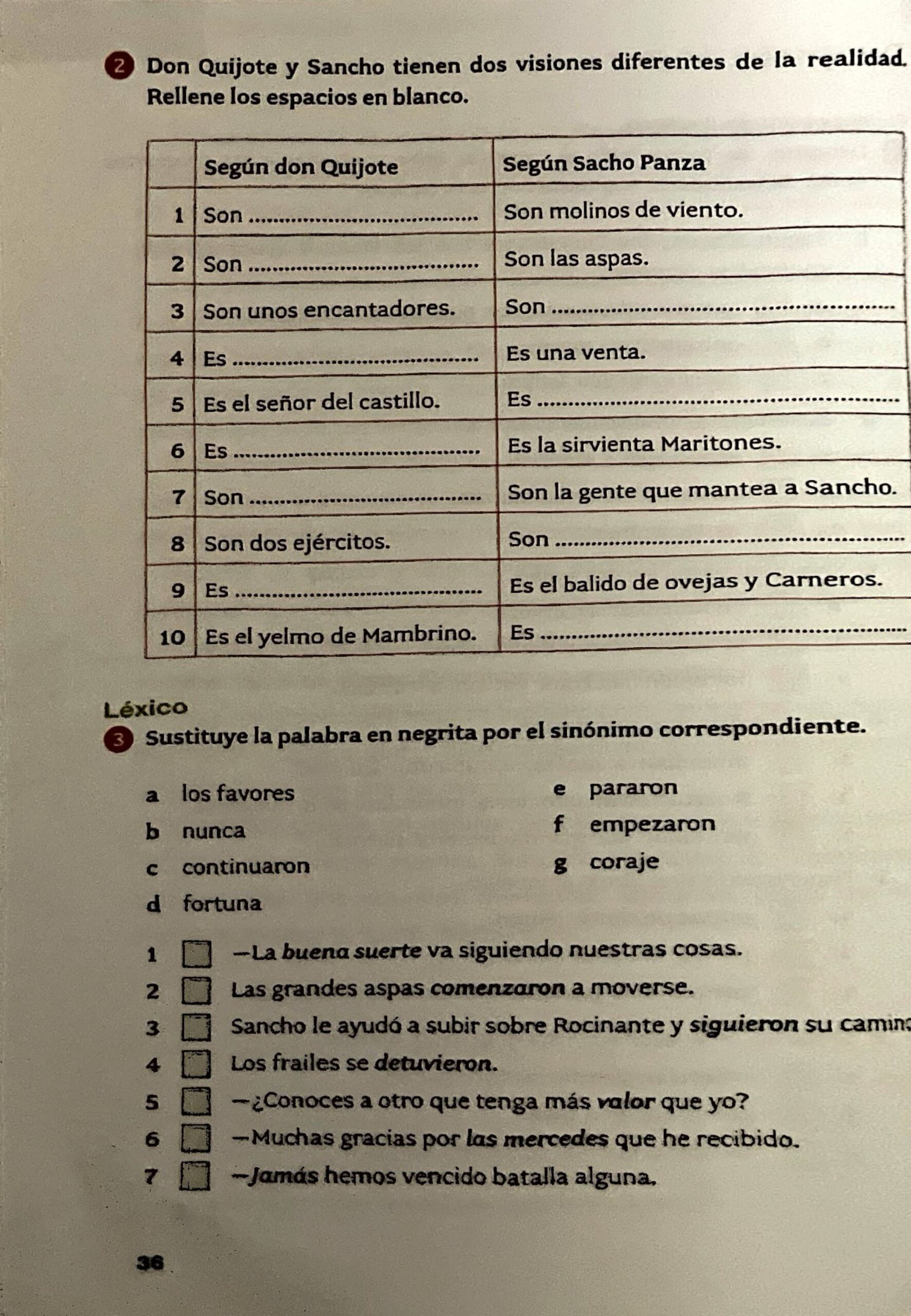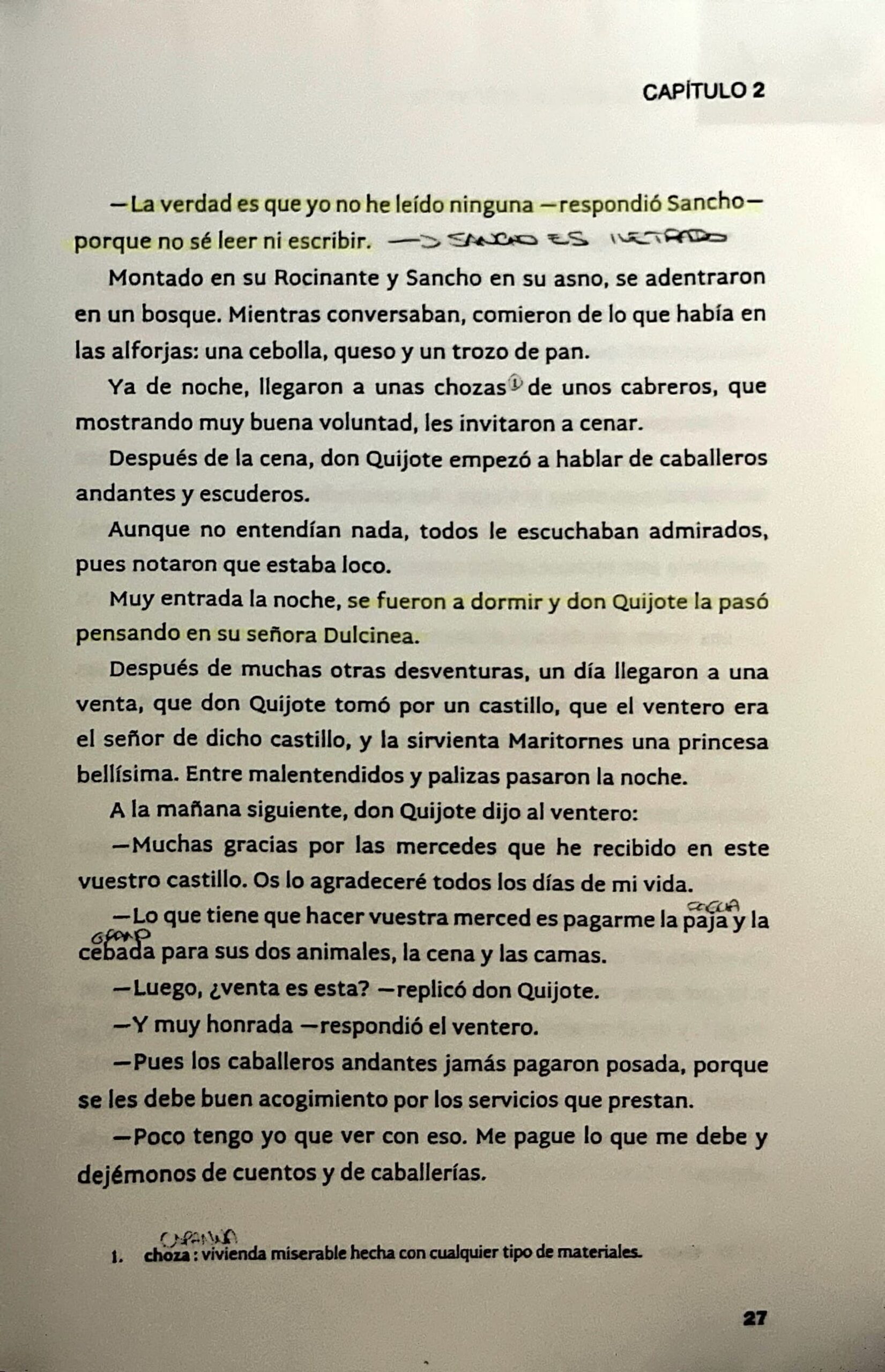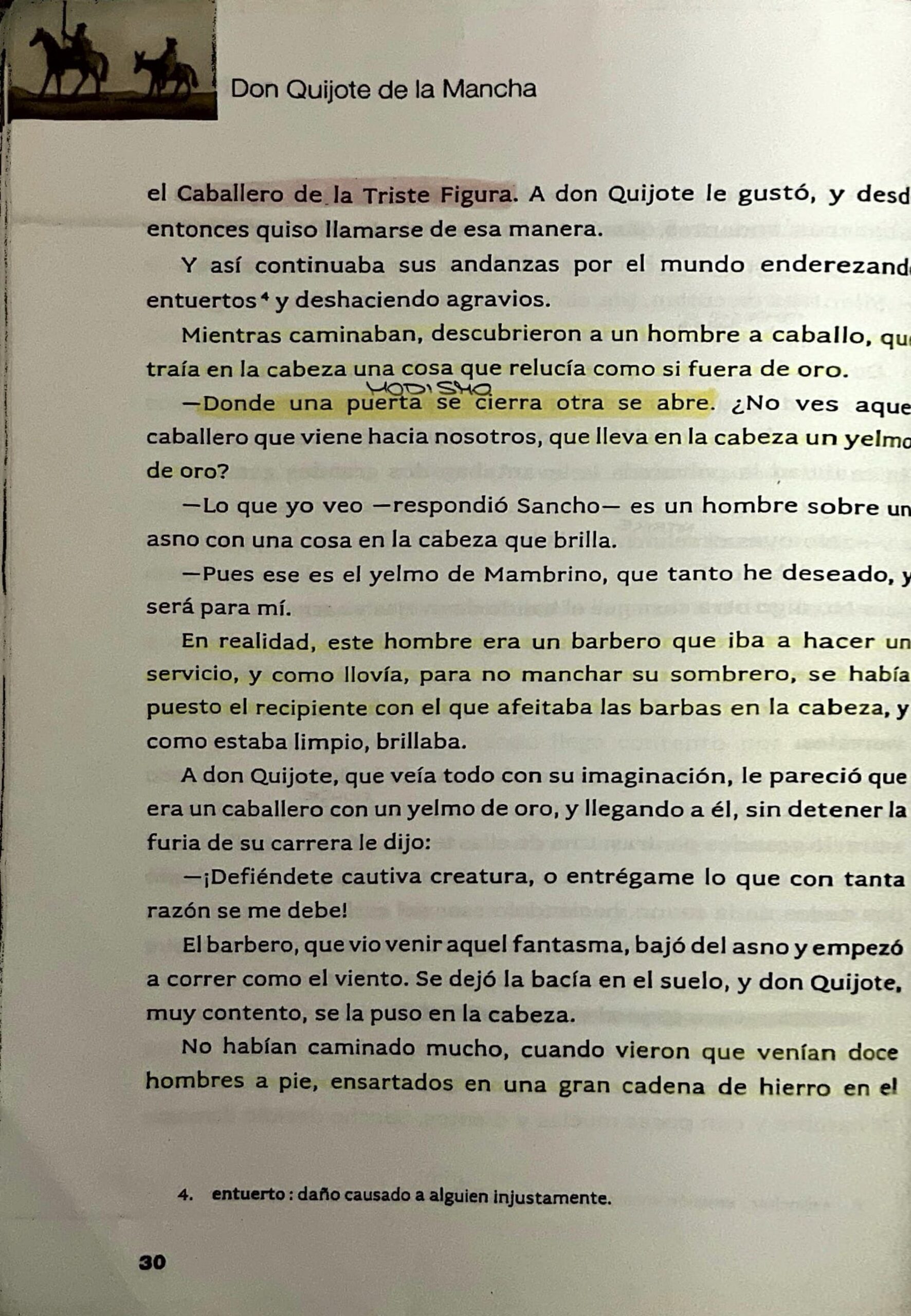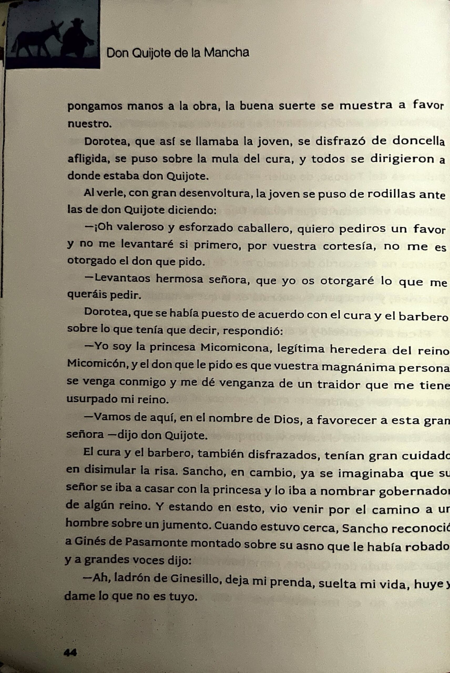 leggere dal libro caricato Don Quijote de la Mancha, da pagina 11 a pagina 16 e svolgere gli esercizi a pagina 10 e 18