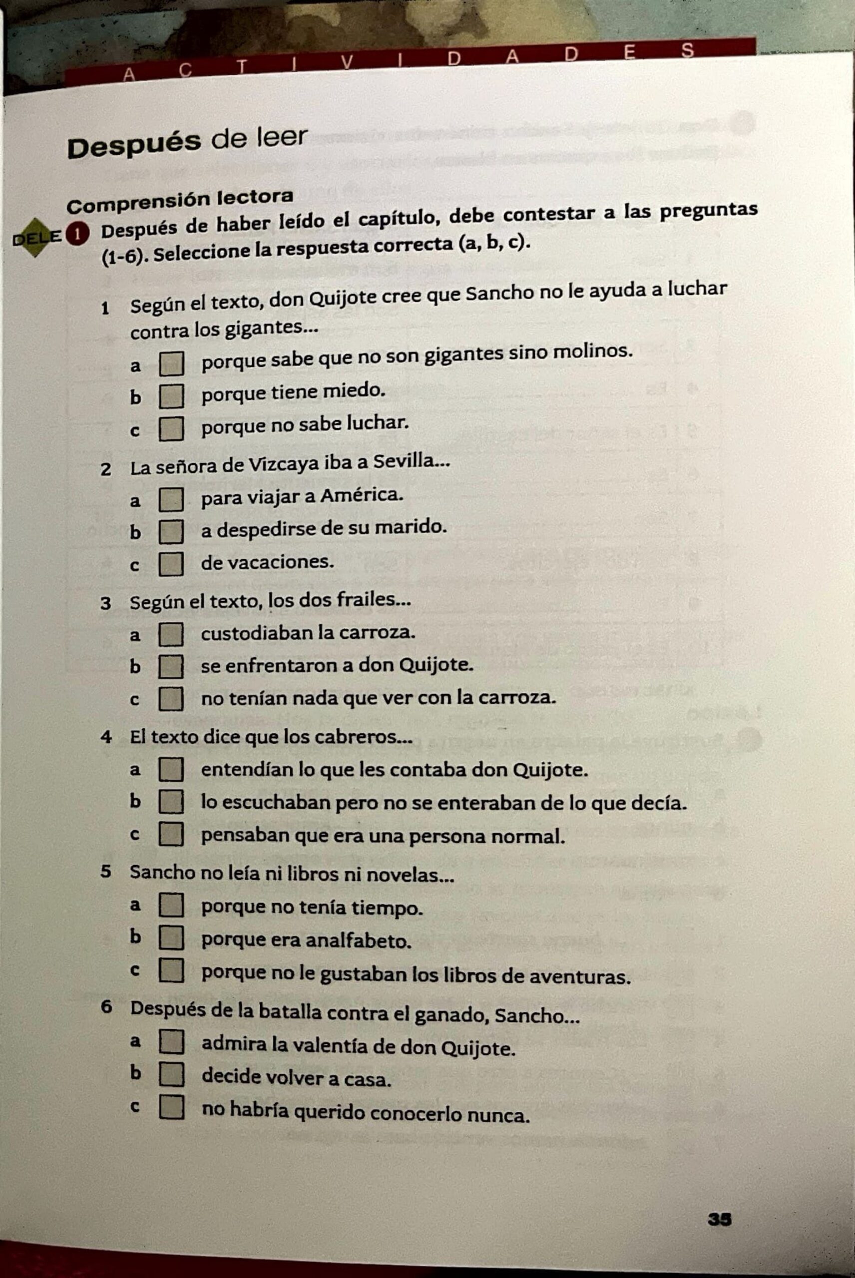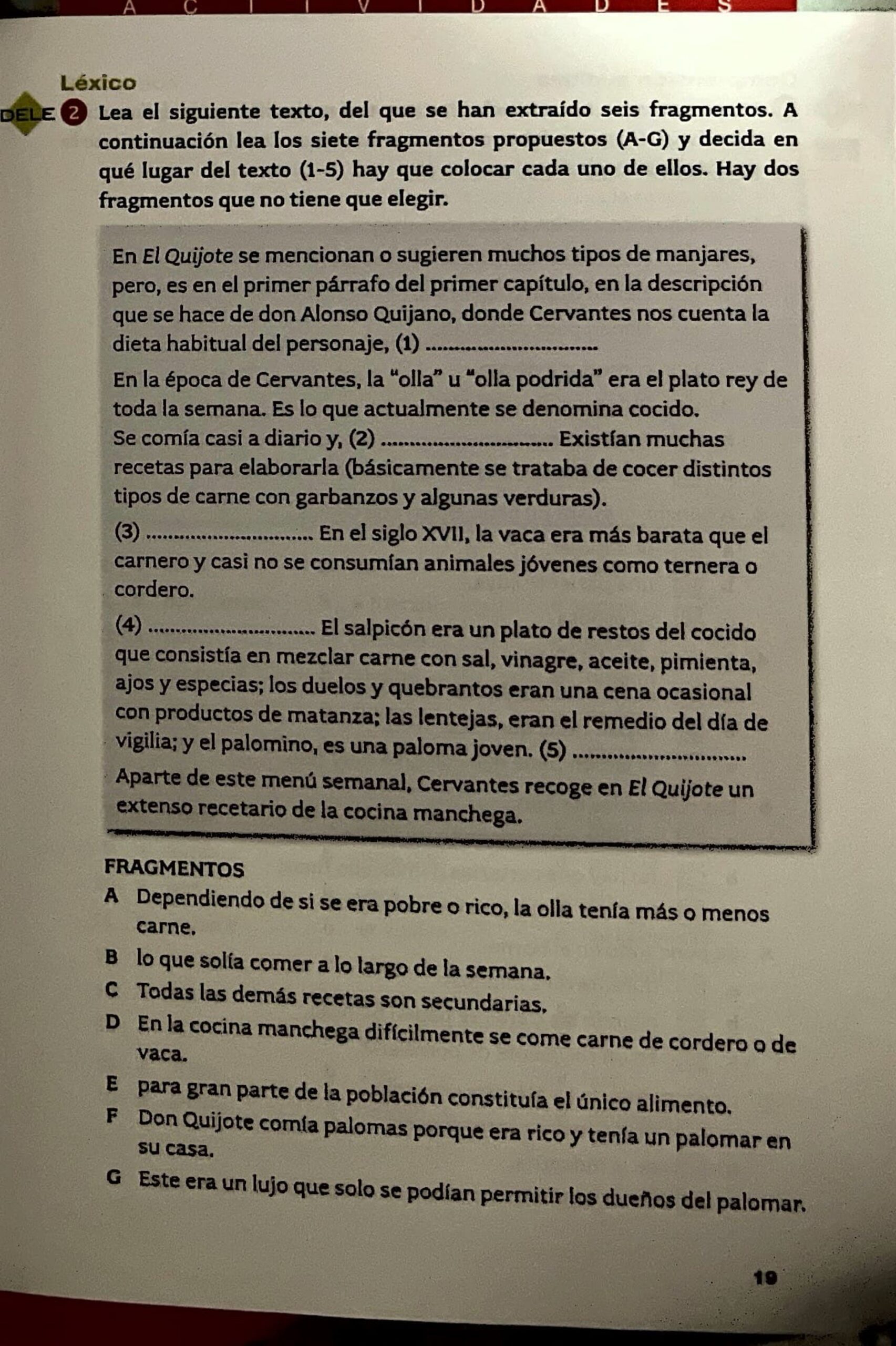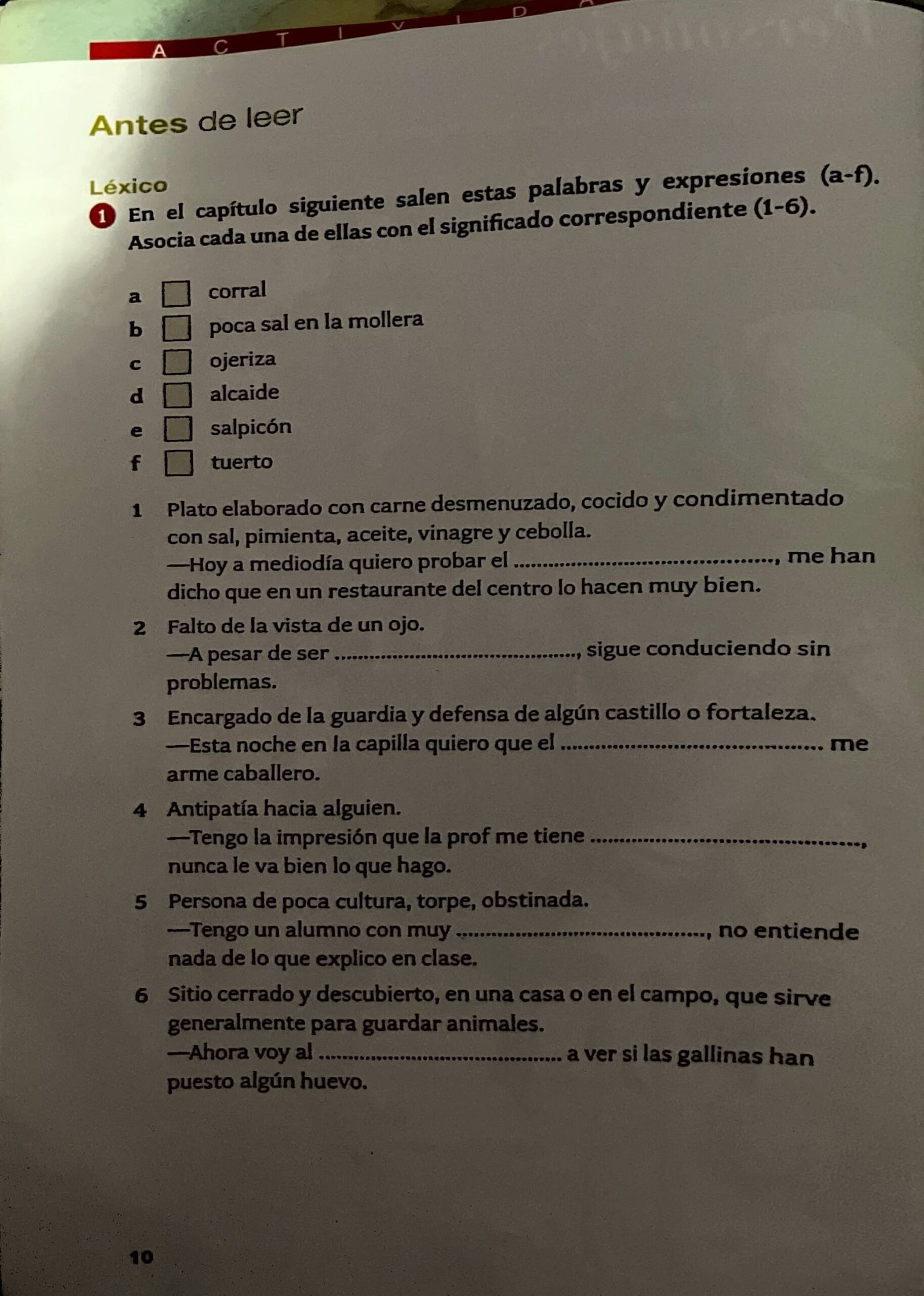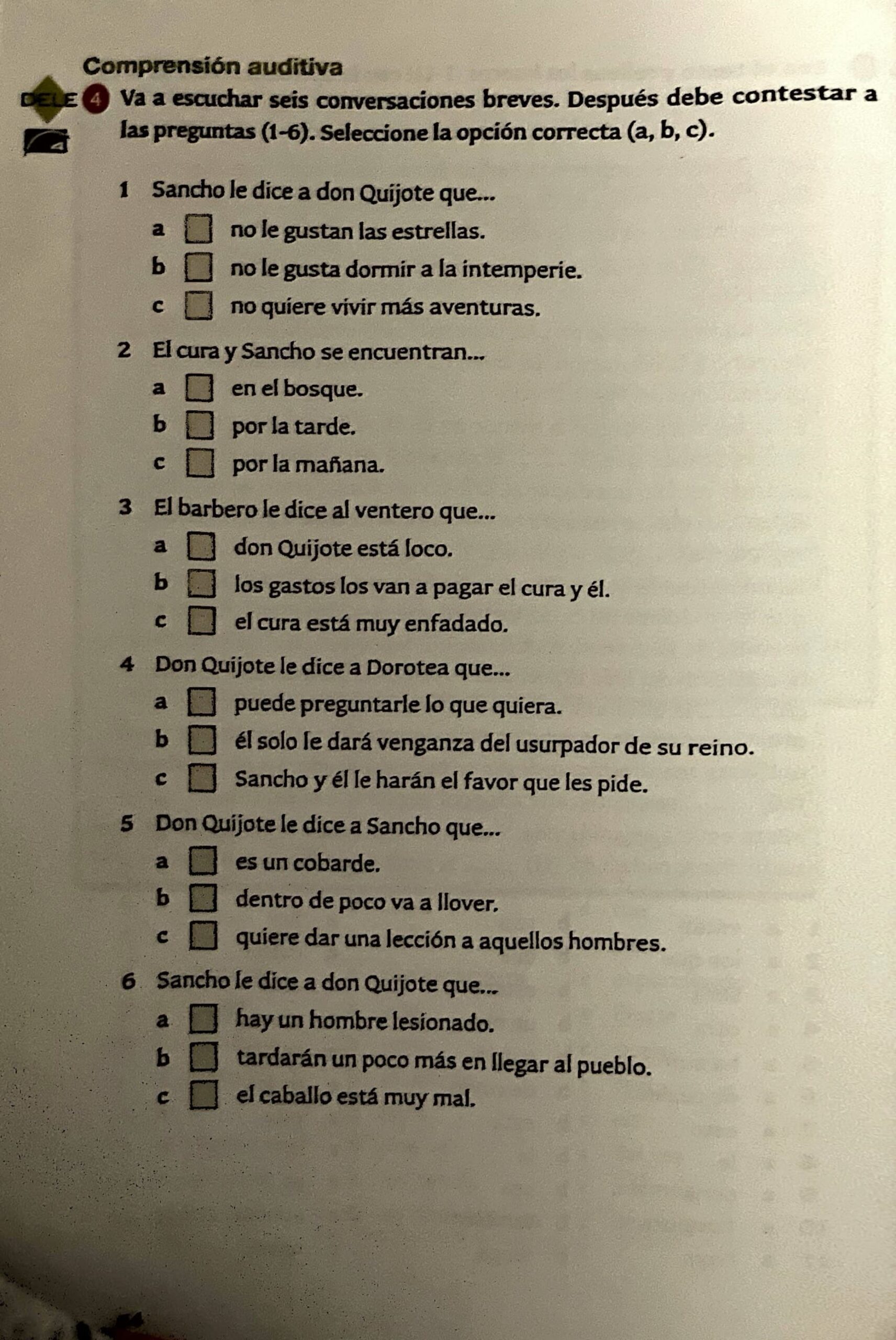 leggere dal libro caricato Don Quijote de la Mancha, da pagina 11 a pagina 16 e svolgere gli esercizi a pagina 10 e 18