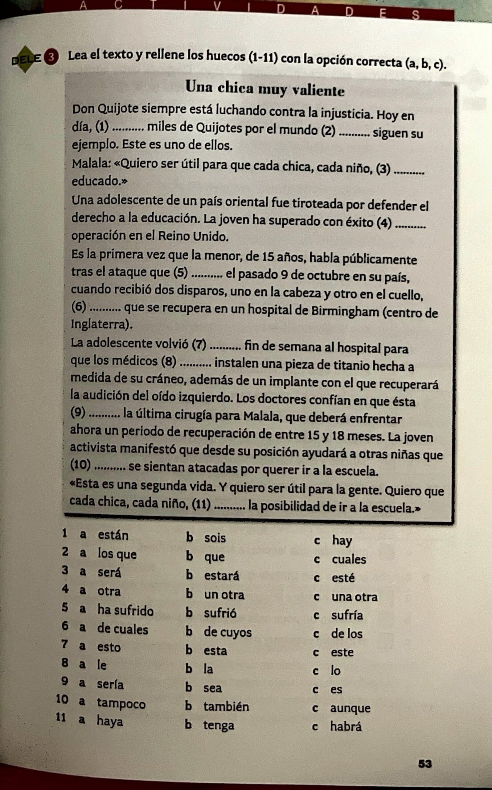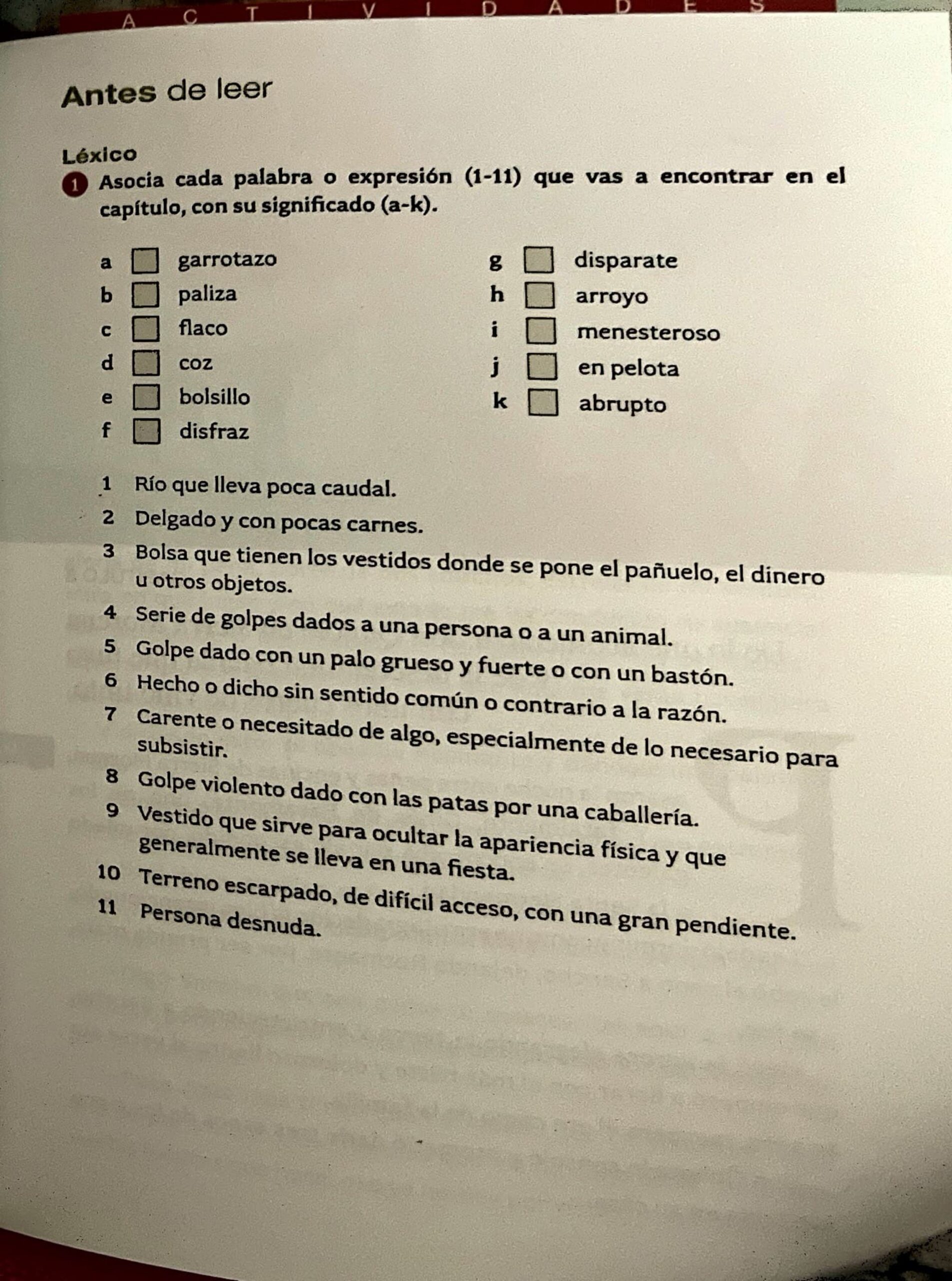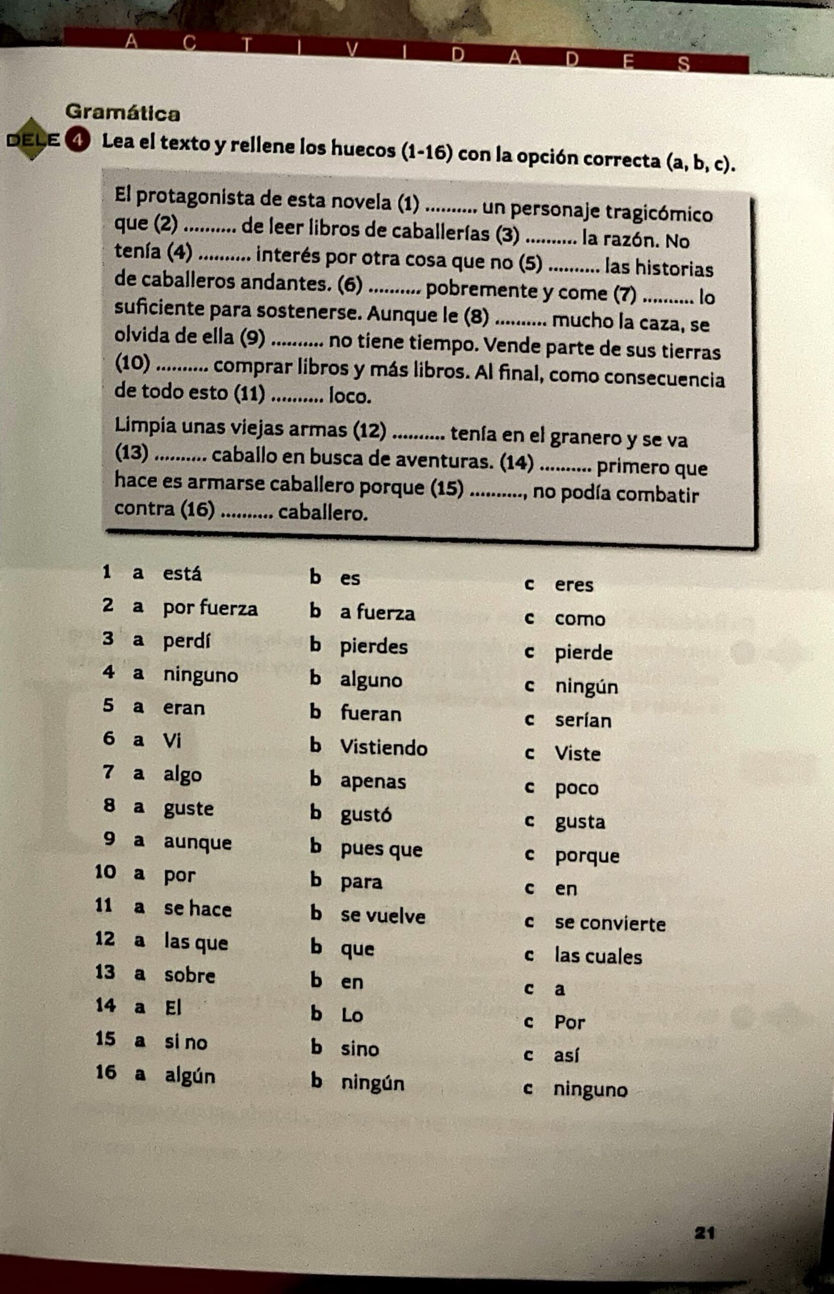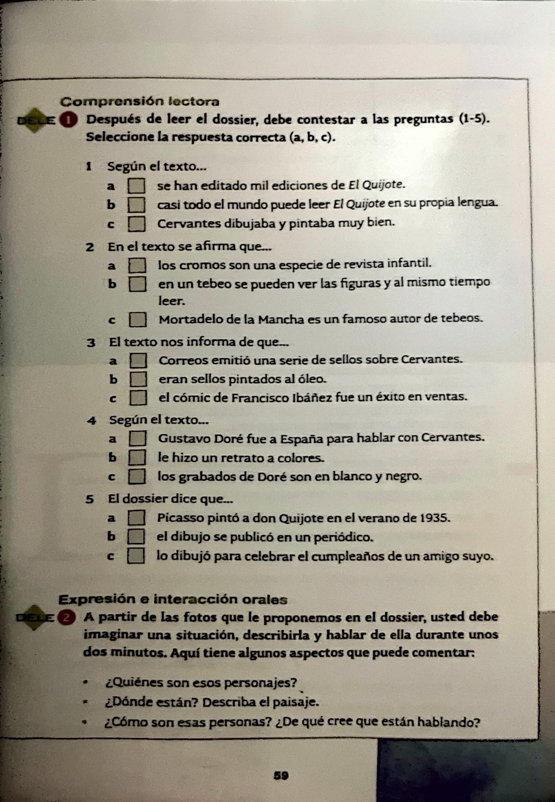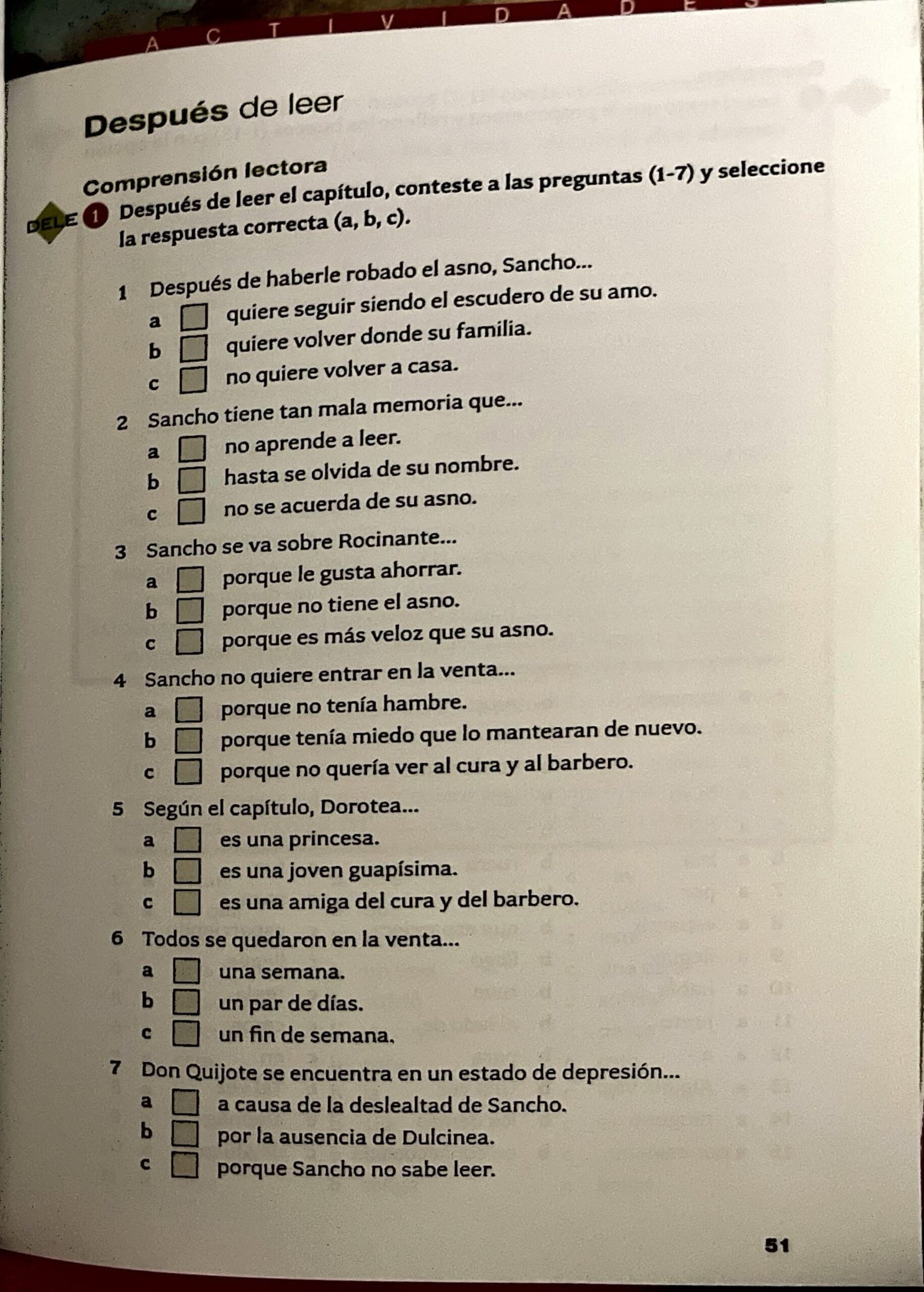 leggere dal libro caricato Don Quijote de la Mancha, da pagina 11 a pagina 16 e svolgere gli esercizi a pagina 10 e 18