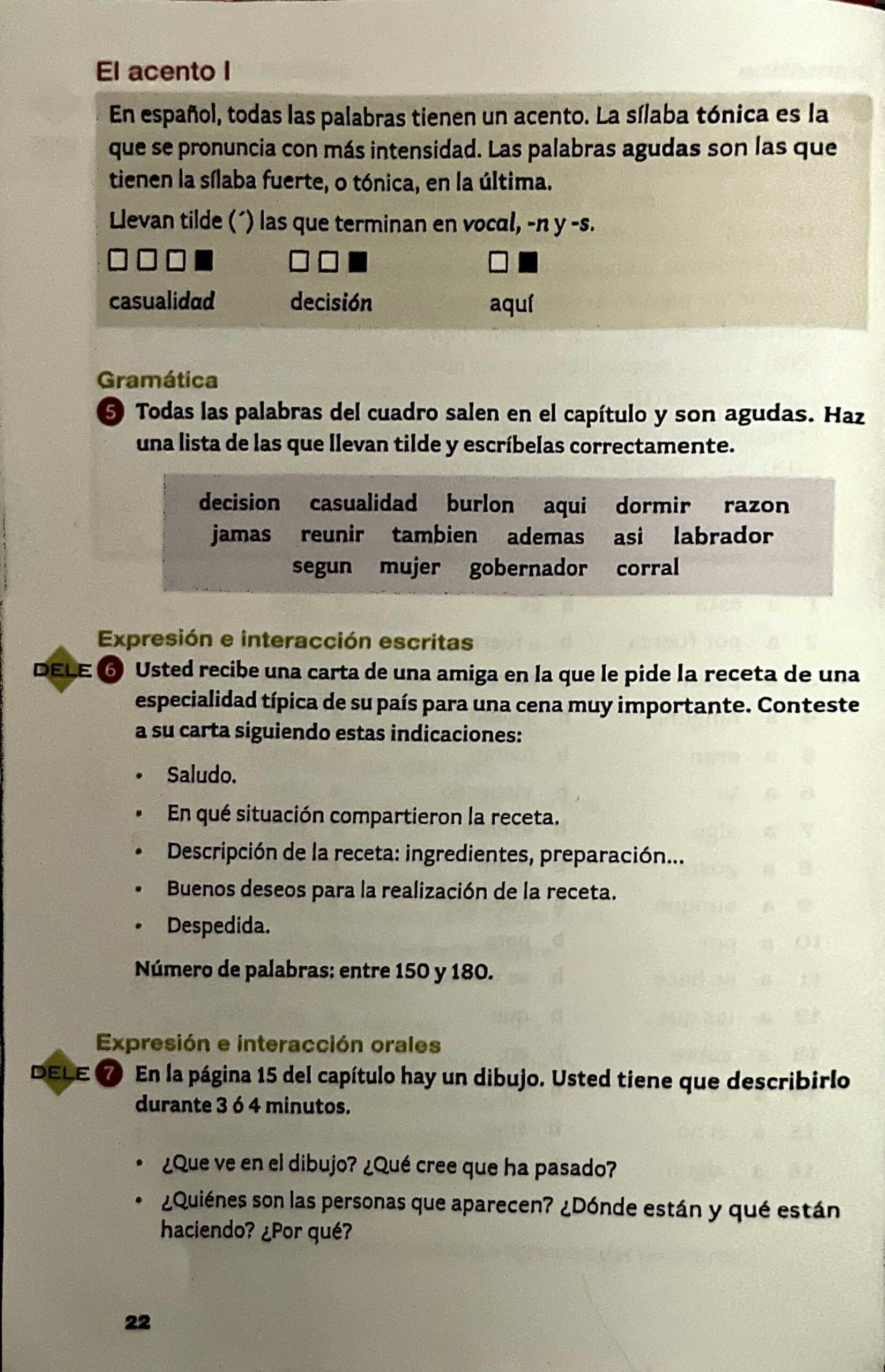 Hablar por teléfono, Escribir una carta y hablar correctamente del pasado, de causas y efectos.